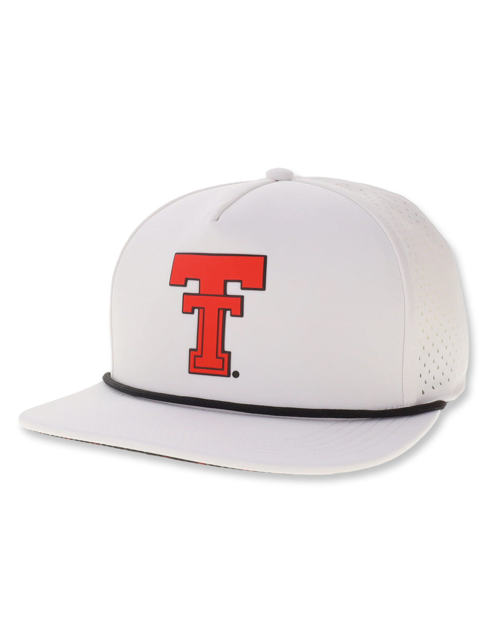 Bring classic country club style to Red Raider Nation with the Legacy Texas Tech Vault Double T "The Country Clubber" Snapback Cap. This sleek performance snapback features a clean white body accented by a bold red Vault Double T logo for timeless team pride. Crafted from lightweight, breathable performance fabric with laser-perforated side panels, this cap keeps you cool and comfortable from tailgate to tee time. The flat bill and contrasting rope detail across the crown deliver a retro-inspired, upscale aesthetic. With an adjustable snapback closure for a custom fit, this cap is the perfect blend of tradition and modern fan fashion.