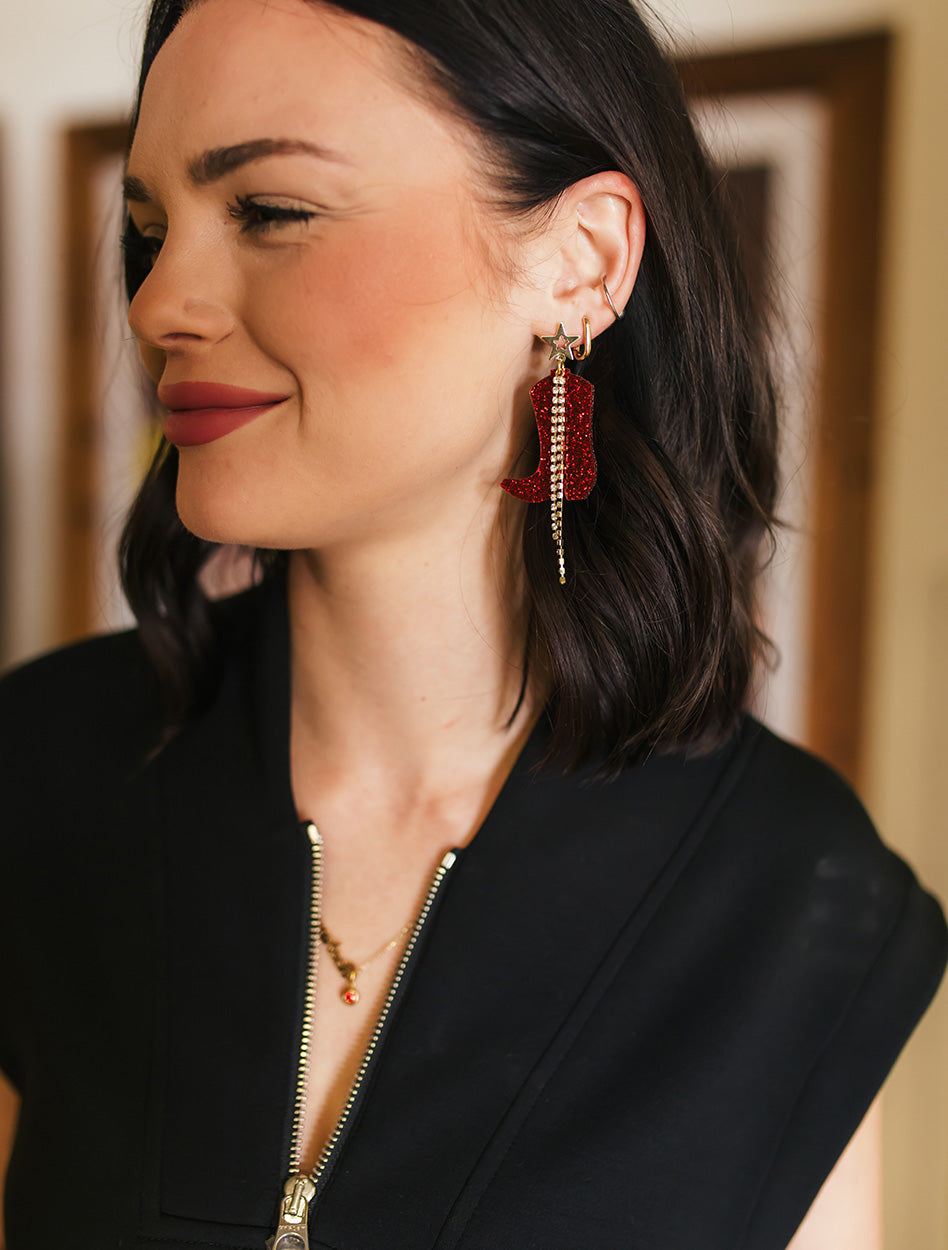 Texas Tech "Game Day" Sparkle Boot Acrylic Dangle Earrings